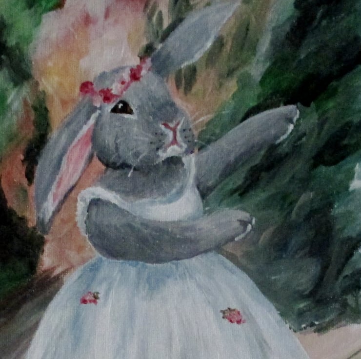 Key words: bunny bunnies rabbit ballet ballerina shoe slipper tutu costume rose pink black present gift Easter birthday Christmas original work of art painting picture