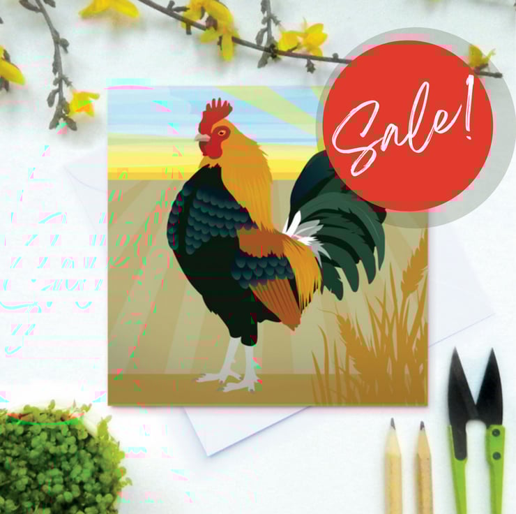Proud Cockerel card - great Spring or Easter card or for poultry lovers! Or a birthday card for anyone who loves farms or animals.