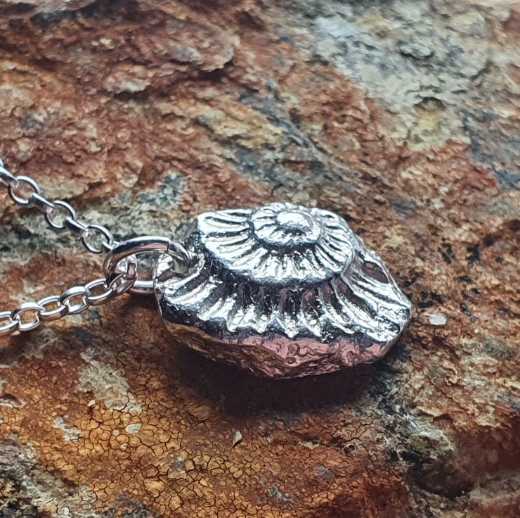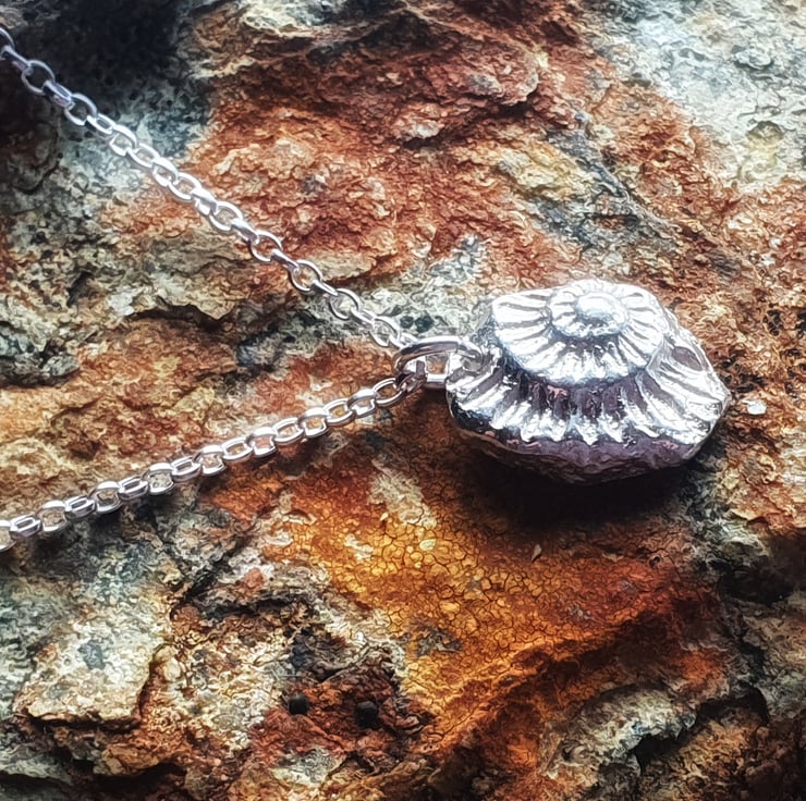 This is a beautiful fossil made from Fine Silver, and hangs from an 18 inch sterling silver chain