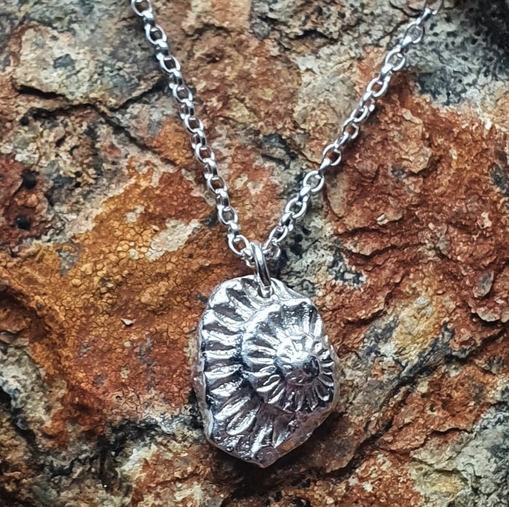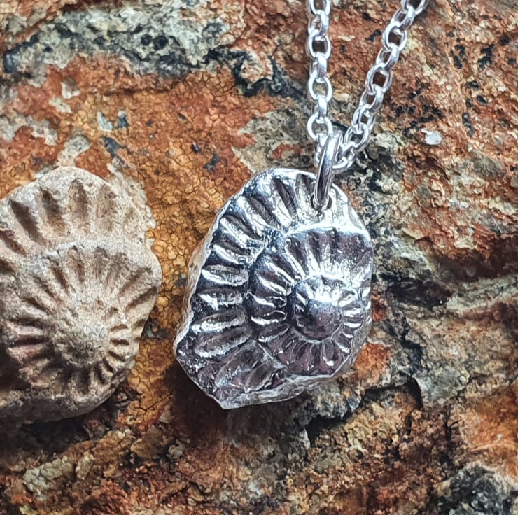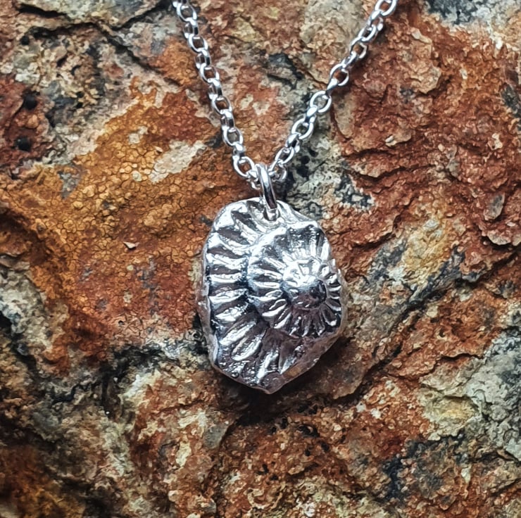 It has been made from a fossil, with an ammonite print, I found on a beach as a child.