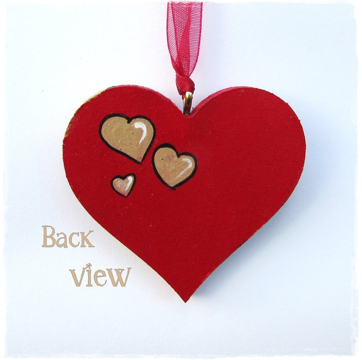 Hanging Heart on Gift & Card, Handpainted Love Heart, Red Hanging Heart