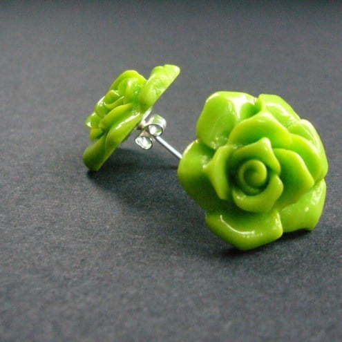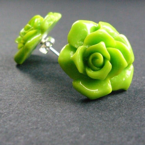 Pair of Lush Lime Green Roses- Love your Lobes.