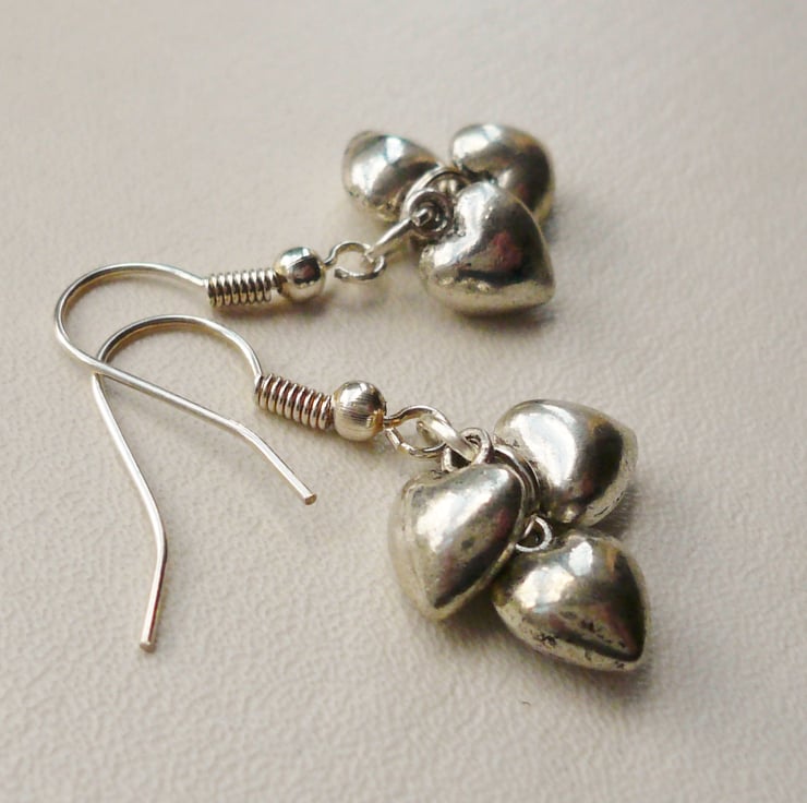 The earrings are made of the same hearts and are hung from silver plated hooks. Total length from hook is 3cm.