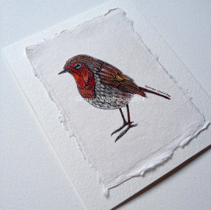 An original drawing of a Robin, on beautiful Handmade khadi paper