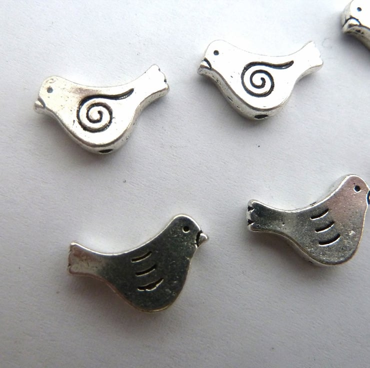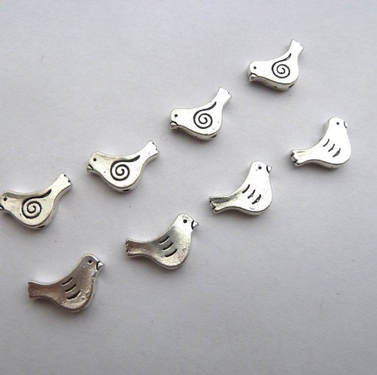 A pack of 8 antique silver bird beads.