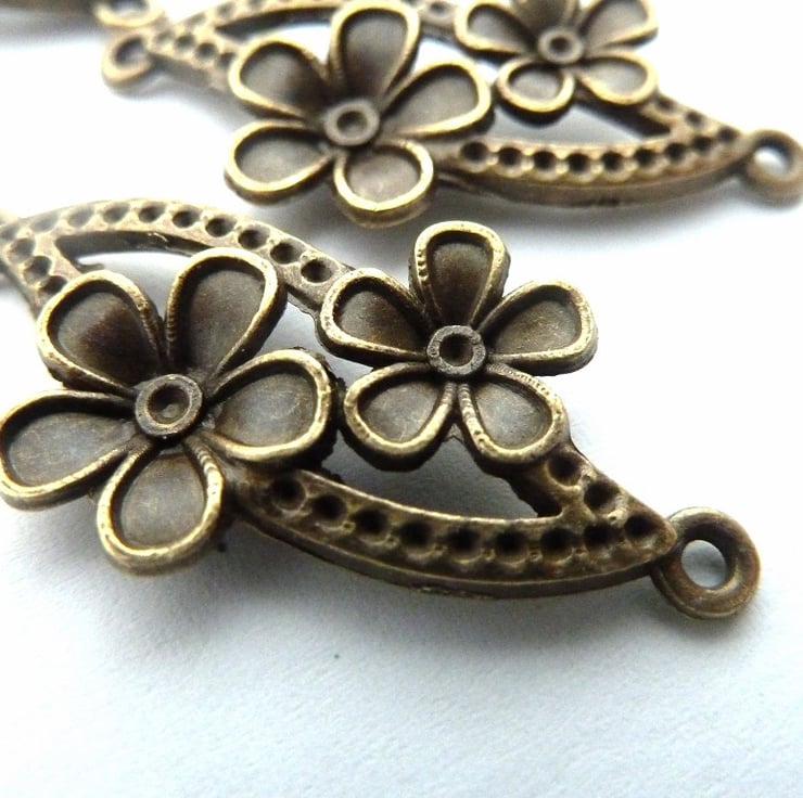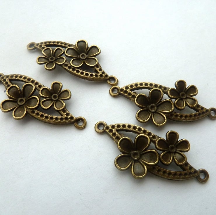 A pack of 4 antique bronze connectors with flower detail.