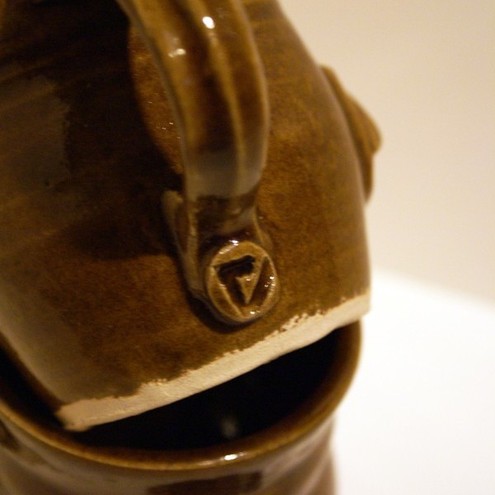 The pot itself has a bulbous shape which helps to keep tea hot as the hot water swirls around inside. It also features a pulled handle which has been later attached to the mug.