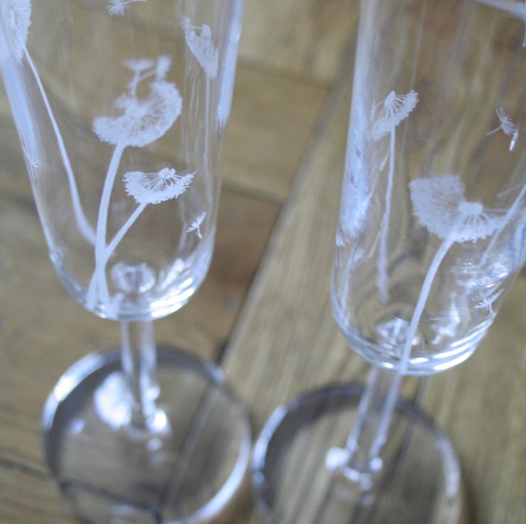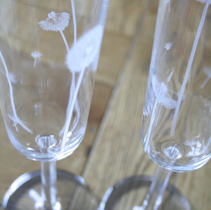 Pair of hand engraved finest blown Bohemia lead - free crystal champagne flutes.