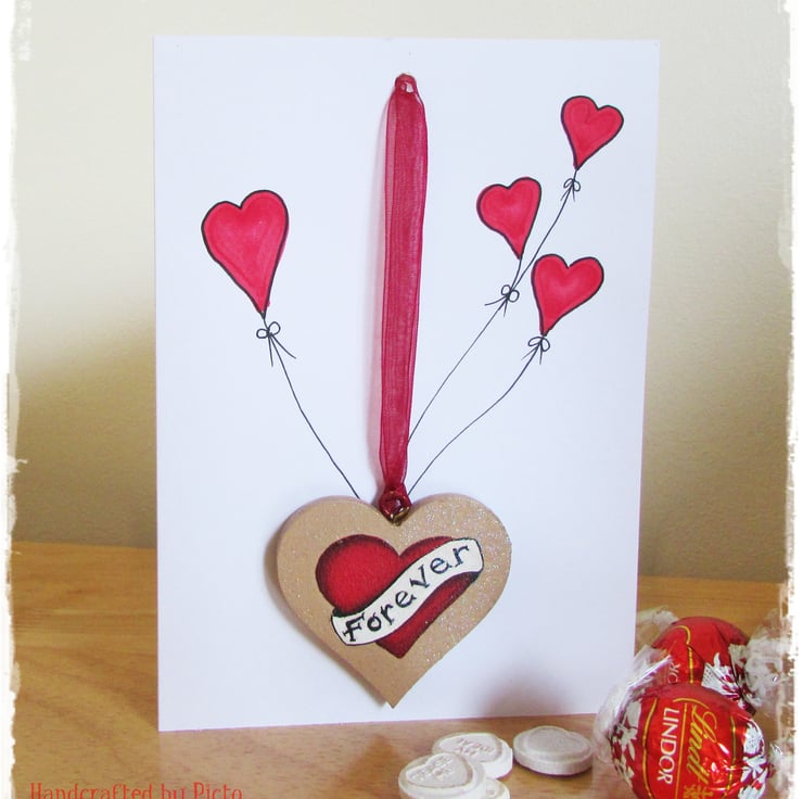 Handpainted Love Heart for Hanging anywhere you so desire. Attached to a Card so a Card & Gift in one. Card is blank inside for your own message.