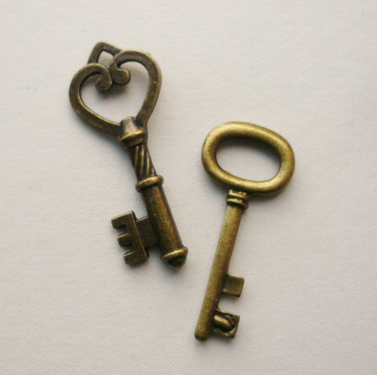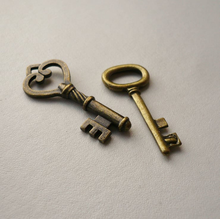 This listing is for 2 x antique bronze Steampunk key charms in two designs.