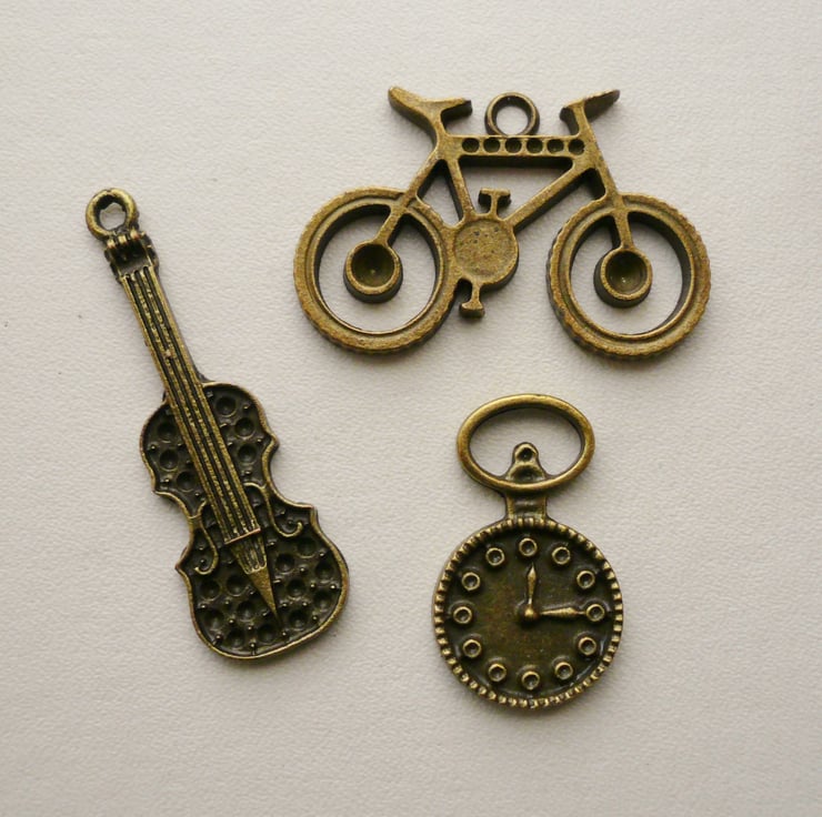 This listing is for 3 x antique bronze Steampunk charms in three designs -