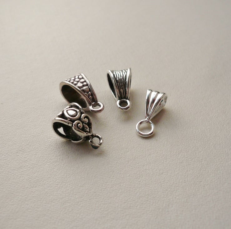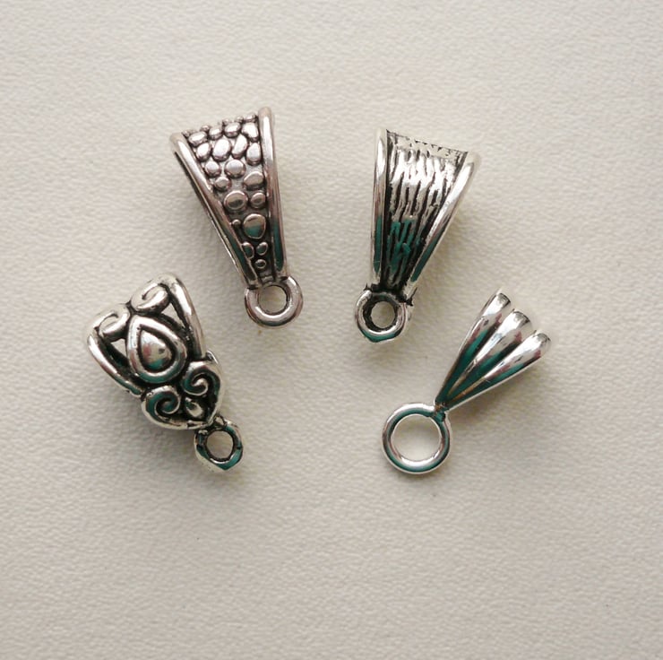 This listing is for 4 x mixed Tibetan silver pendant bails - 1 each of 4 different designs.