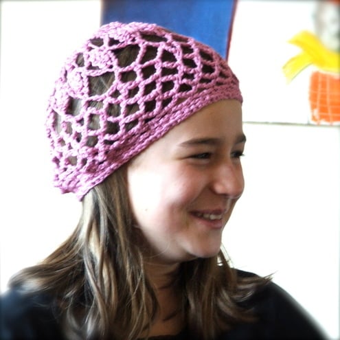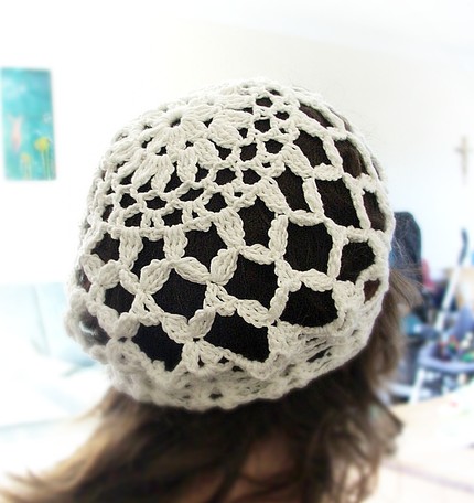 very soft and unique head cover, the beret inspired by vintage doily pattern