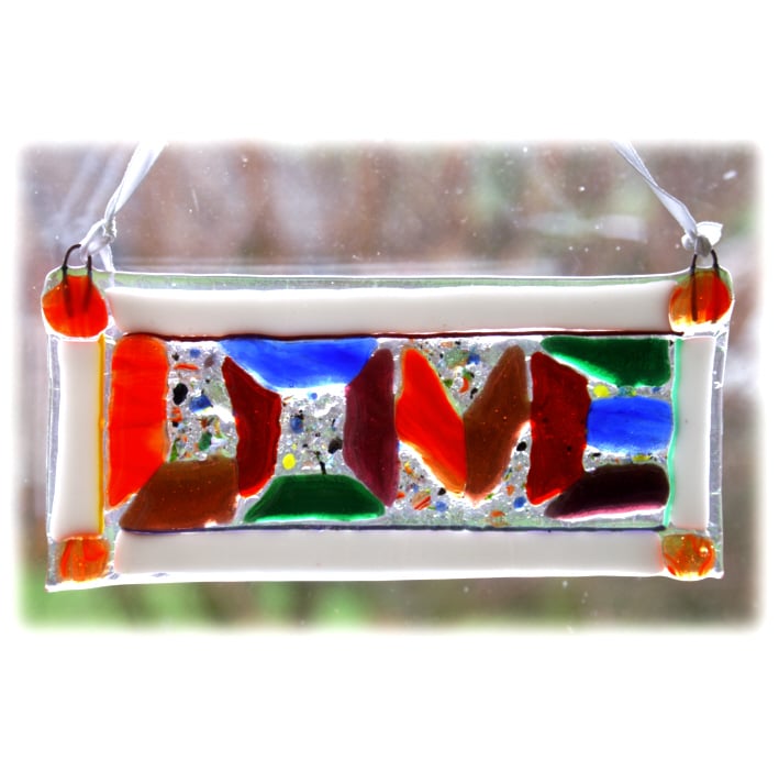 Made from Bullseye glass, handcut, shaped, layered and decorated with a unique design.