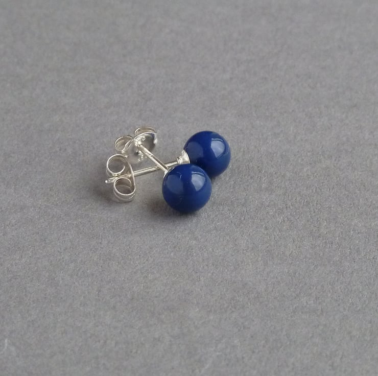 This small pair of royal blue stud earrings have been created using 6mm dark lapis glass pearls. As each pair of cobalt blue studs arrives individually gift wrapped, these pearl studs make perfect gifts and are perfect for wearing everyday.