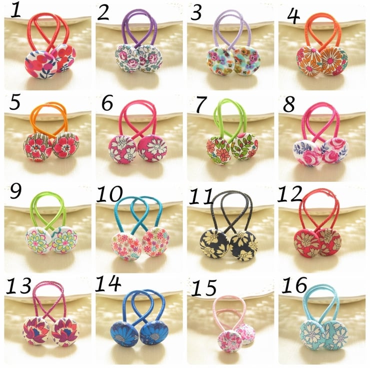Liberty London fabulous tana lawn fabric in a beautiful rainbow selection of colours. A meadow of cute as a fabric button bobbles for hair mini size 23mm on snag free vibrant elastics.