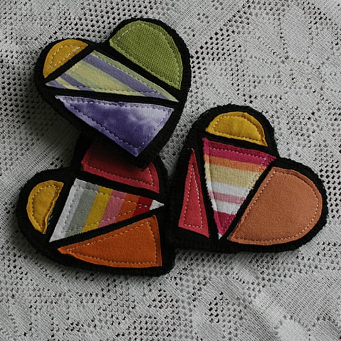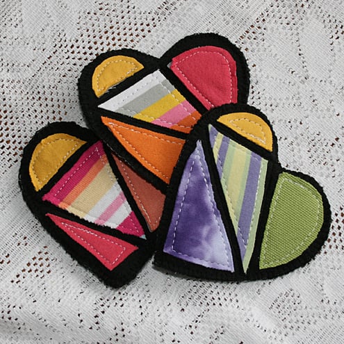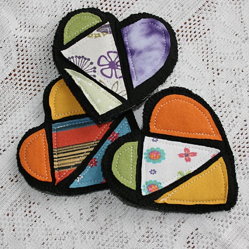Colourful stained glass has inspired the design of these heart-shaped coasters - bright and cheerful for use indoors or on the patio.