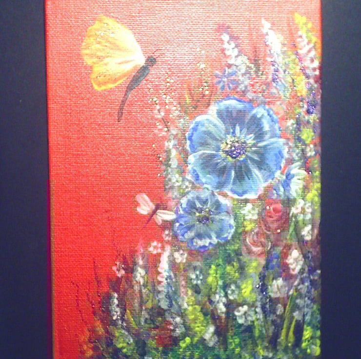 this is an original painting that has been created using quality materials. It will come in a clear polybag to protect it. This is an original and not a print. This painting measures 7"x5" and is on canvas board. It is unframed. This painting also contains glitter.