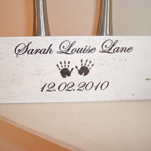 ready to hang with natural jute, personalised dat and name for the new arrival or christening gift-feet or hands, many thanks