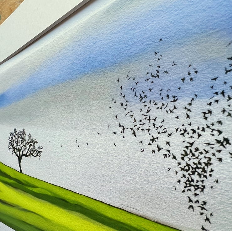 Summer has past and autumn colours begin to dominate the landscape. Birds congregate and plan for warmer climates. Leaving the bare tree to a season of cold winds, the birds join to resemble it's shape.