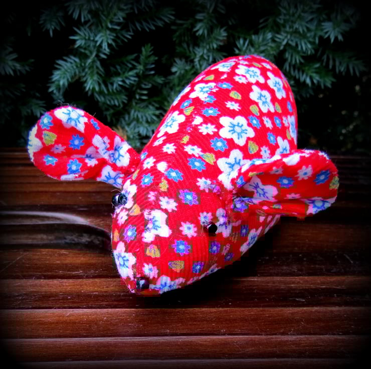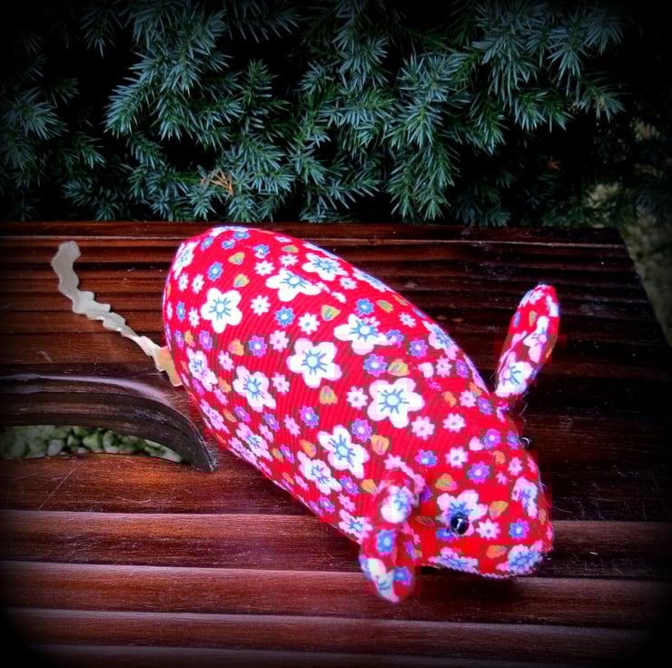 This sweet little field mouse pin cushion measures 11cm in length, ( 4.3 inches) excluding her tail.