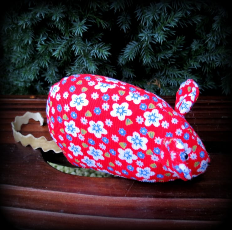 Her body is made from a soft babycord, and her tail is made from velvet ric-rac.