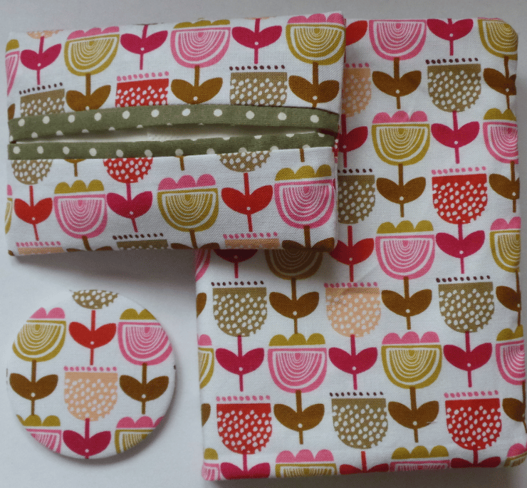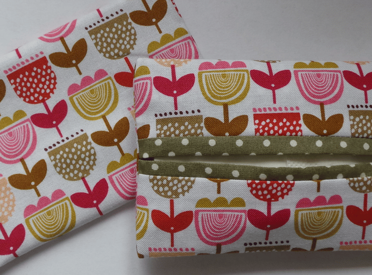 Fabric Pocket Tissue Holder Tulips flowers hand made