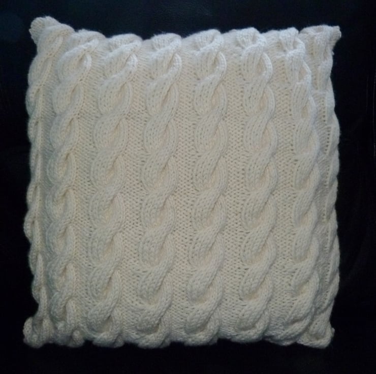 I have hand knit this beautiful cushion cover from 100% pure wool in Aran weight yarn.