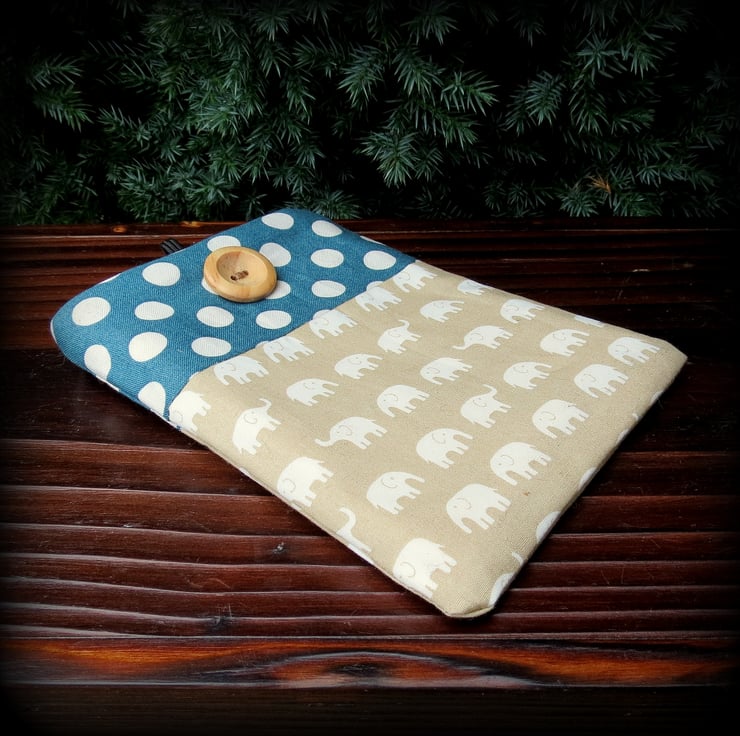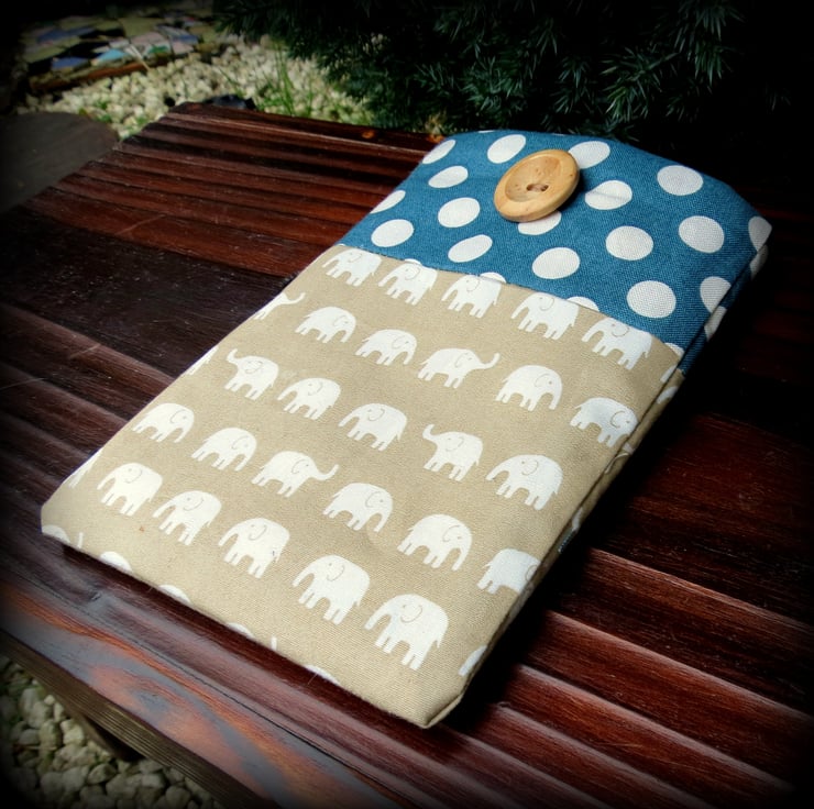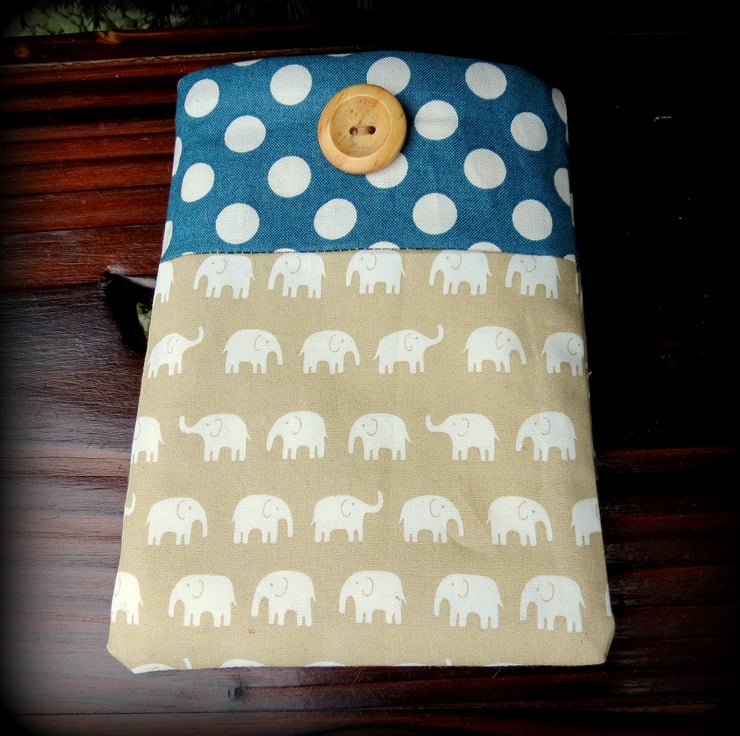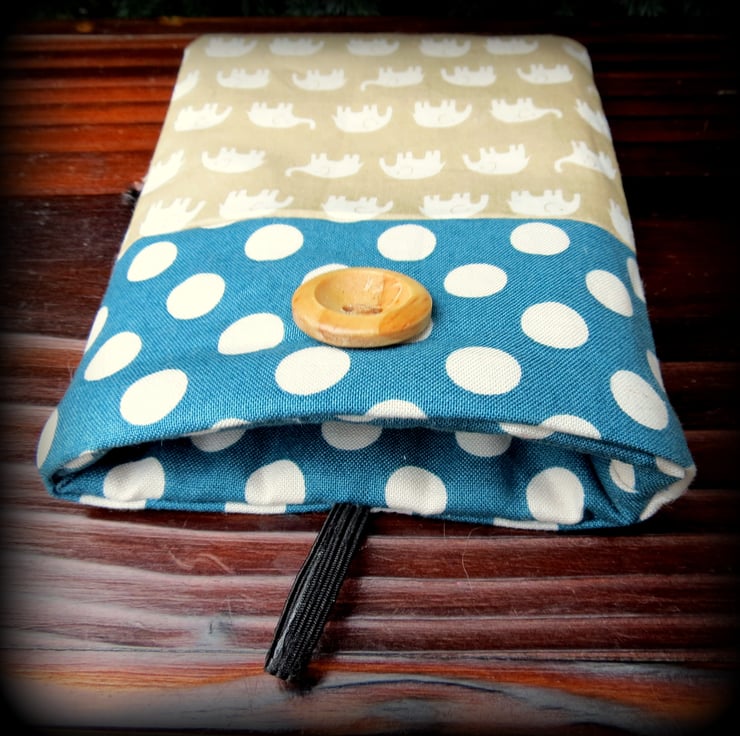 This mobile phone sleeve has been made from two contrasting cotton prints.