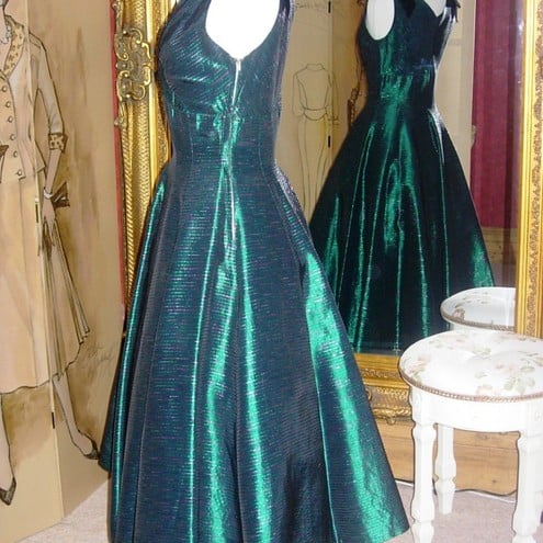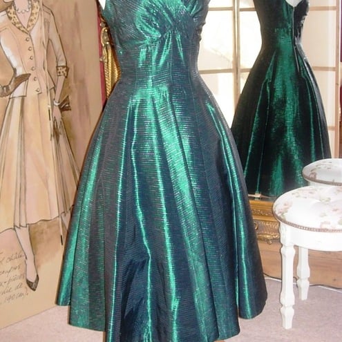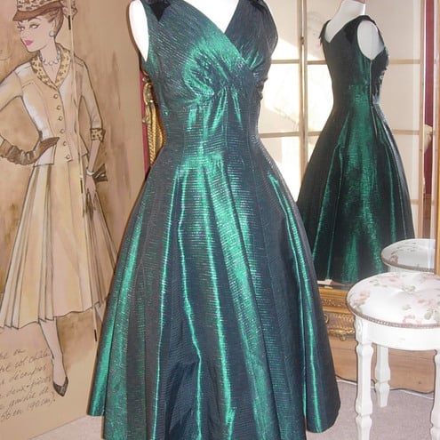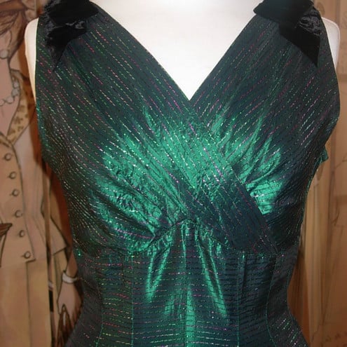 Fabulous Emerald Green Party Dress. Believed to date back to the late 50's or possibly early 60's with its original metal side zipper (which still runs smoothly). A real snip at only £55 (Reduced from £85).