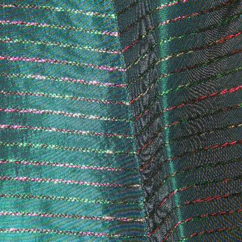 Taffeta fabric with coloured thread running through at about 1cm intervals.