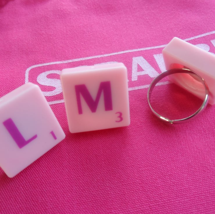 Quirky Limited addition Pink Scrabble tile letter adjustable rings.