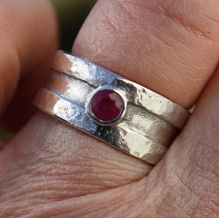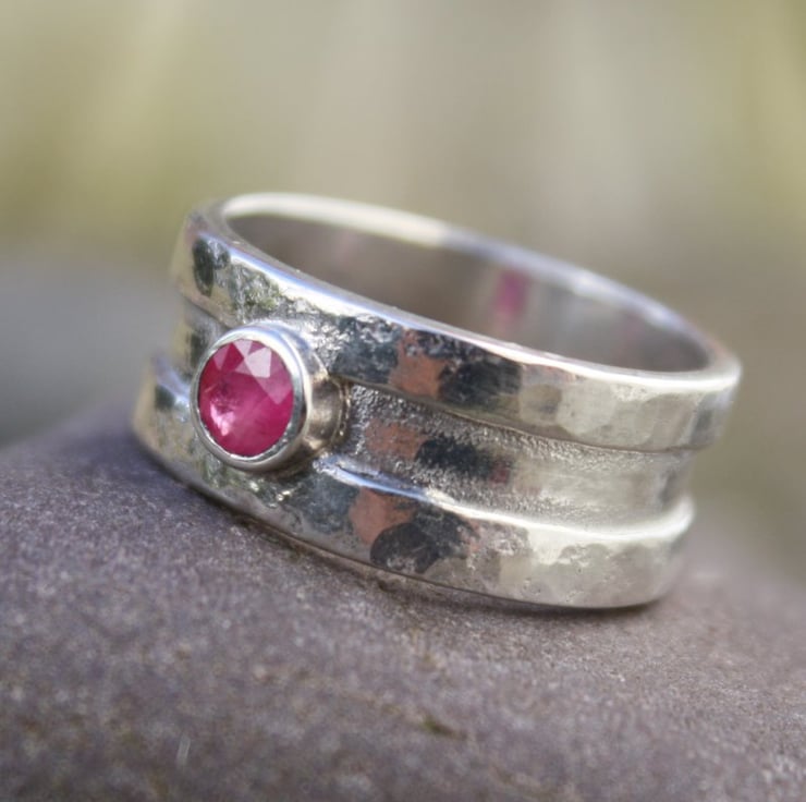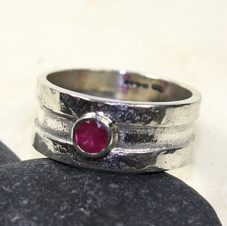 Rill - A beautiful wide sterling silver ring, set with a pretty faceted ruby .