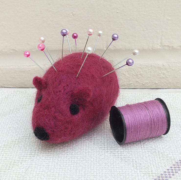 This little hedgehog makes an adorable addition to any sewing set, and will keep pins safe and tidy too. The pins (included) make up his spikes, and the cushion measures approx 7cm long.