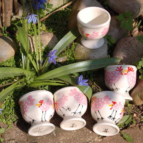 I paint each one individually but have done these in a run of five. the underglaze colour is food safe and I fire to earthenware temperatures.