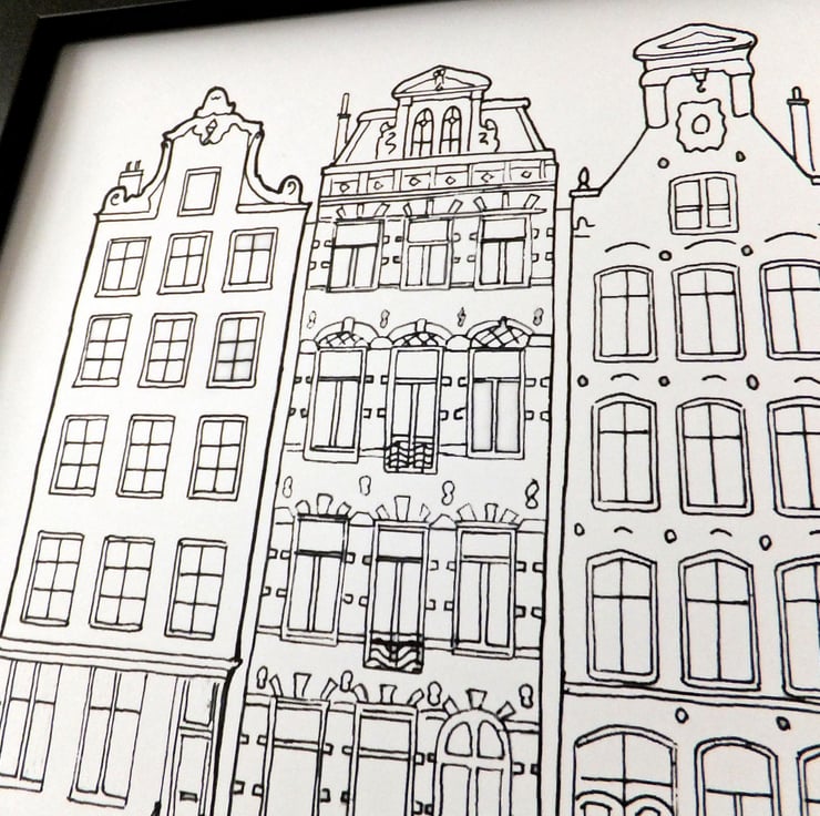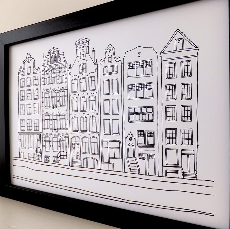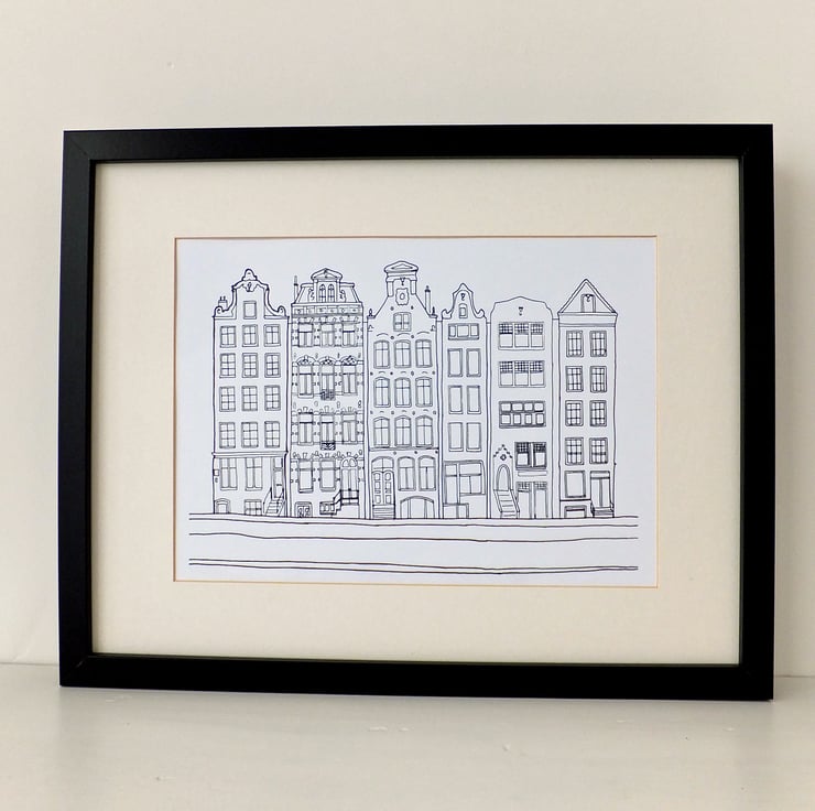 A fabulous print of Amsterdam canal houses in the Netherlands. A wonderful piece of art for your home to remind you of trips to Amsterdam!