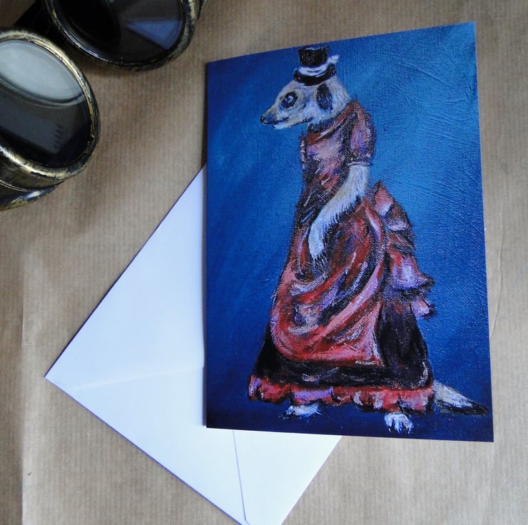 Keywords: Steampunk Meerkat Meercat Art Animal Cat Top Hat Victorian Dress Greeting Card
