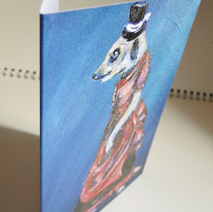Blank retro greeting card from my original animal acrylic painting Steampunk Meerkat