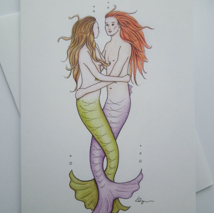 Undersea Sweethearts greeting card, featuring a print of one of my original pencil and ink drawings. Ideal Valentine card.