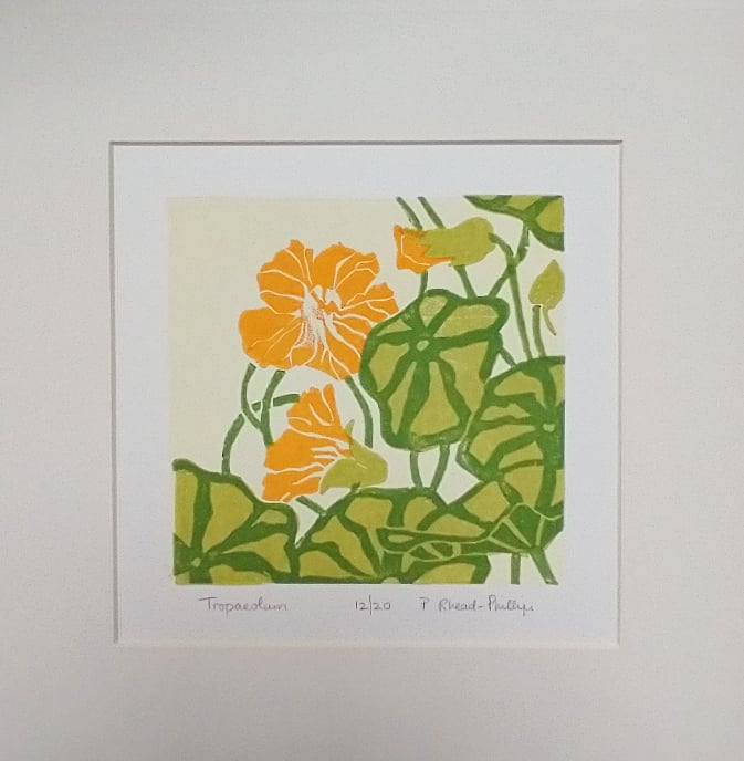Tropaeolum - Nasturtium  Original Lino print - Limited edition.