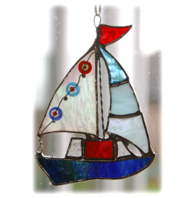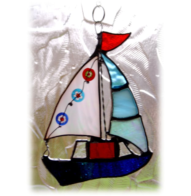 Boat Suncatcher Stained Glass Sailboat Yacht 039