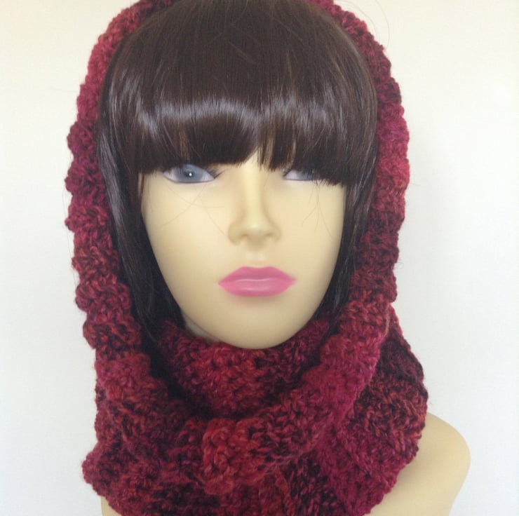 It is a simple tube that can be worn as a cowl around your neck or pulled up over your ears and worn as a hood