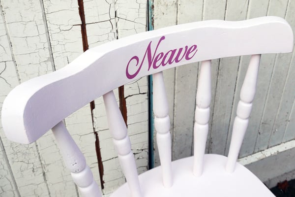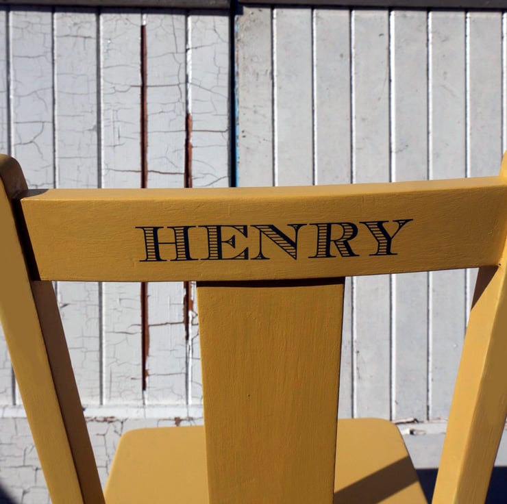 Child's personalised vintage wooden chair with name upcycled and made to order by Emily Rose Vintage