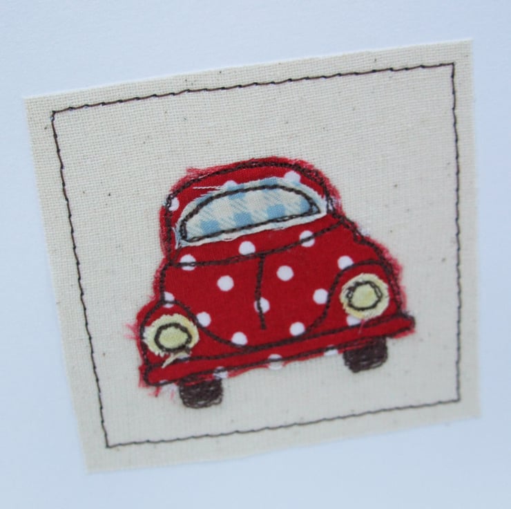 This card has a cute little VW Beetle Bug Car machine embroidered onto it! A perfect card for any occasion whether it's for a birthday or passing a driving test!