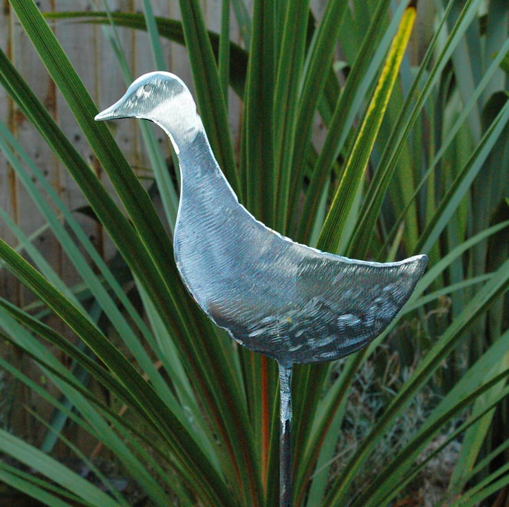 A decorative metal plant support crafted from mild steel. The plant support is approx 36" tall and is handmade from mild steel and lacquered to retain the polished metal finish.