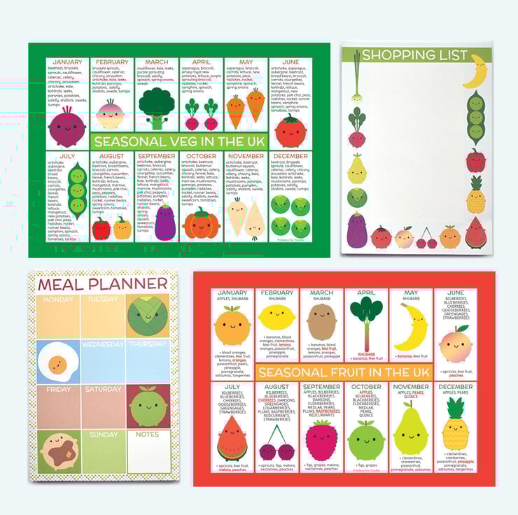 Available as a set of magnets or postcards. Pop them on your fridge or pinboard, stick them inside your recipe book or even send one to a friend.