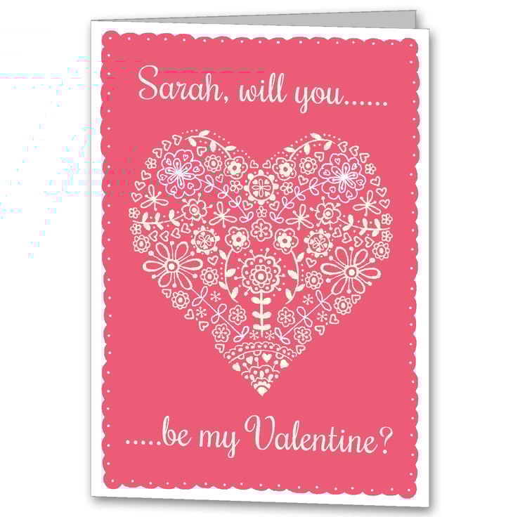 This beautiful folk inspired Valentine's day Card features the name of the lady you love on the front, making it a truly special card to show you care.