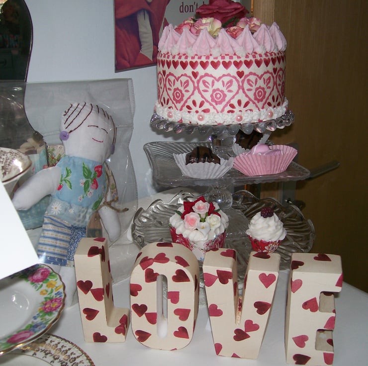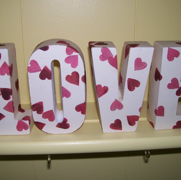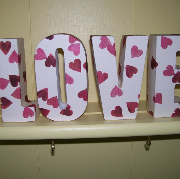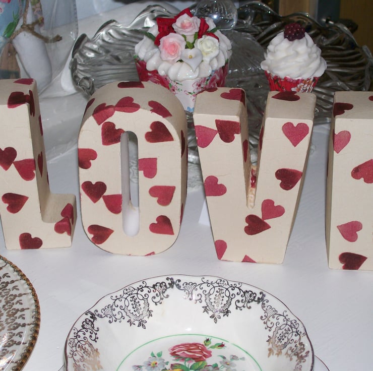 Freestanding LOVE letters, made using Emma Bridgewater Hearts Design...