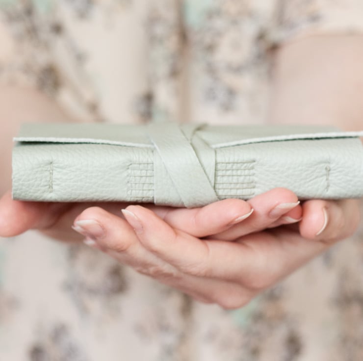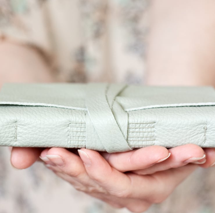 Leather Journal - Pastel Mint Green - Handbound Wrap Book - 6 x 4 - Blank