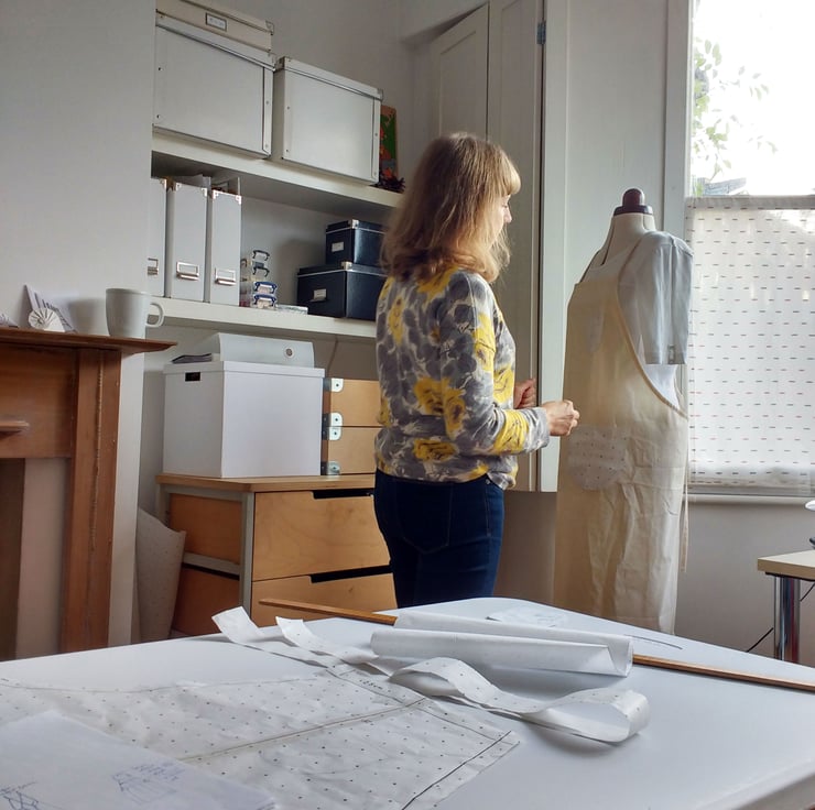 This apron is crafted in my home studio - with meticulous attention to detail and finish, I pre-washed the fabric, turnings were carefully measured, pressed and stitched, and all the thread ends hand sewn in.